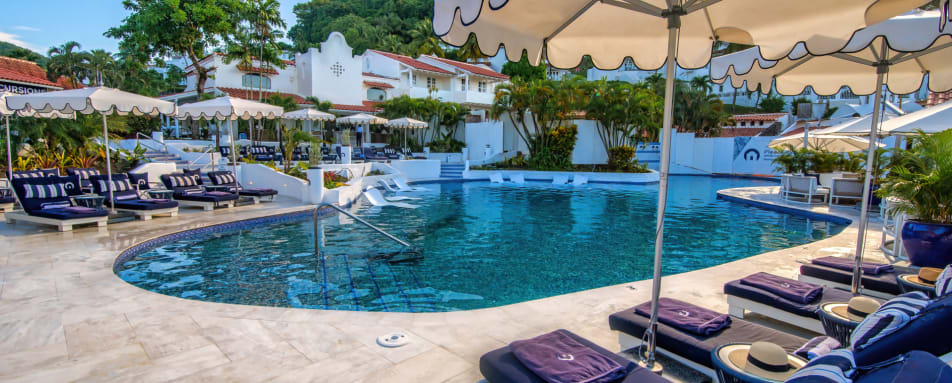 • Mediterranean-village charm with hillside villas and expansive beach setting