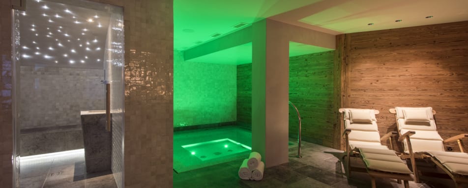Relax and recharge aching limbs in the private spa with hot tub, plunge pool, sauna and hammam.