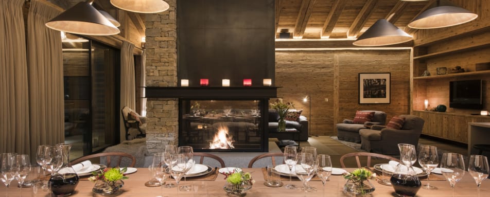 Gaze across sensational mountain views while enjoying the sophisticated luxury of the living room, warmed by a statement central fireplace.