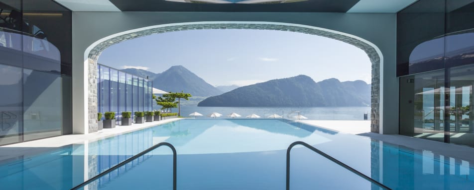 With an idyllic setting on Lake Lucerne, this 5-star heritage hotel exceeds all expectations with flawless service, elegant décor, award-winning cuisine, extensive wine cellars, indulgent spa, and impressive art collection.