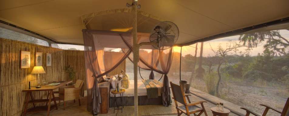 The camp comprises eight spacious tents including a family tent, all of which are hidden away within the trees to induce maximum privacy. The luxurious tents are stylishly furnished while maintaining traditional safari charm. Each tent has been designed with comfort and ease with the added luxury of ‘evening breeze’, a cooling system surrounding the bed to keep temperatures cool through the hotter months. The tents are all en suite and have the added luxury of both an indoor and outdoor shower. A shady veranda offers an inviting spot to relax in between activities and watch the wildlife pass through camp.