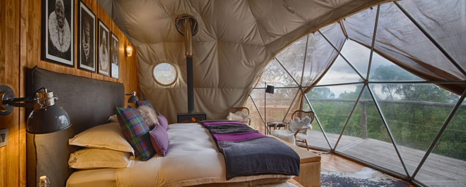 The Highlands offers a new experience in the Ngorongoro region, combining luxurious accommodation and access to some of the lesser known volcanic craters north of Ngorongoro on age-old Maasai walking trails. Tucked into the forest for maximum privacy, this low impact, high design camp has just eight chic dome-shaped tents with a mix of glass and canvas, beautiful wooden floors and wood-burning stoves to keep them toasty and warm even on the cool high altitude evenings. Creature comforts abound, with cosy sheepskin rugs, woollen blankets and even wifi in the rooms.