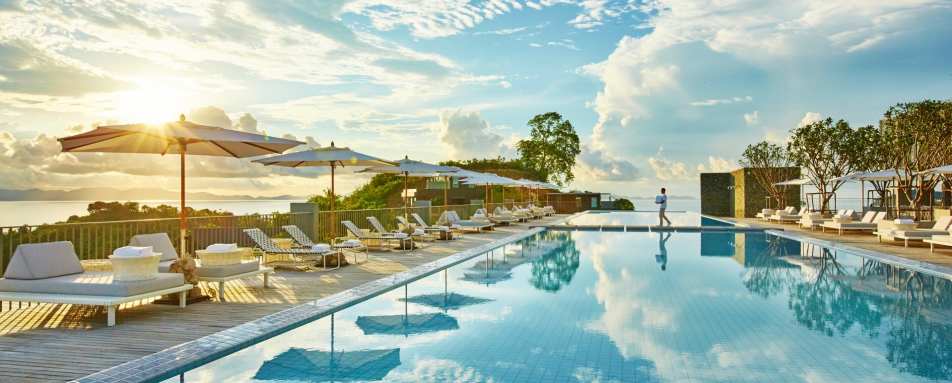 All 79 rooms and suites and 27 private luxury villas take design inspiration from the cool blues and turquoises of the Andaman Sea, framed with floor to ceiling windows. Nearly every room benefits from a private terrace with mesmerising views across Phang Nga Bay or over the Cape, while the larger pool suites and private villas boast individual private swimming pools.
