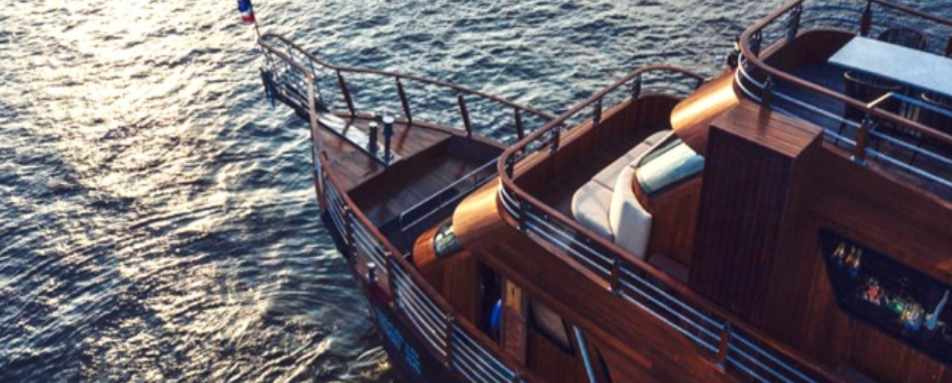 The Pruek Cruise is built almost entirely from Thai teak, the kind with elegant grain patterns that catches the light just so. It's one of Bangkok's finest private yachts, and tonight it's yours.