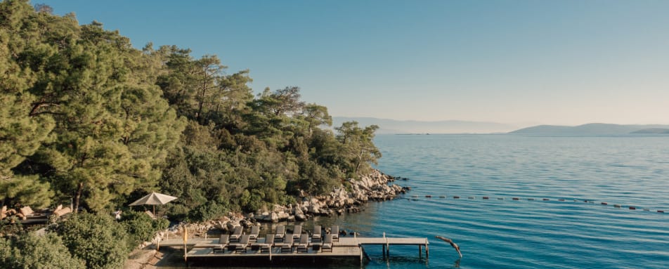 The resort offers three Dining Pavilions serving Mediterranean and Turkish cuisine. Due to the variety of microclimates in Turkey, the kitchen is able to offer an ever-changing seasonal menu. Each pavilion offers a different setting and all have sea views. Picnic and in-suite dining are also possible. A Terrace and casual dining venue at the Beach Club completes the dining options.