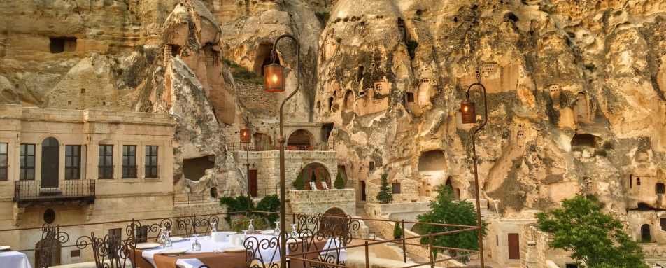With sweeping views of the caves and featuring local Cappadocian dishes such as grape leaves, kebabs and ravioli, the Caverna Restaurant is a taste of Cappadocia in scenic surrounds. Outside terraces offer al fresco dining with a view while a cosy fireplace corner is ideal for cooler evenings. If the tranquil surrounds and mesmerising views don’t prove sufficiently relaxing, the caves also house an atmospheric spa, with holistic treatments taking inspiration from Balinese and Thai traditions.