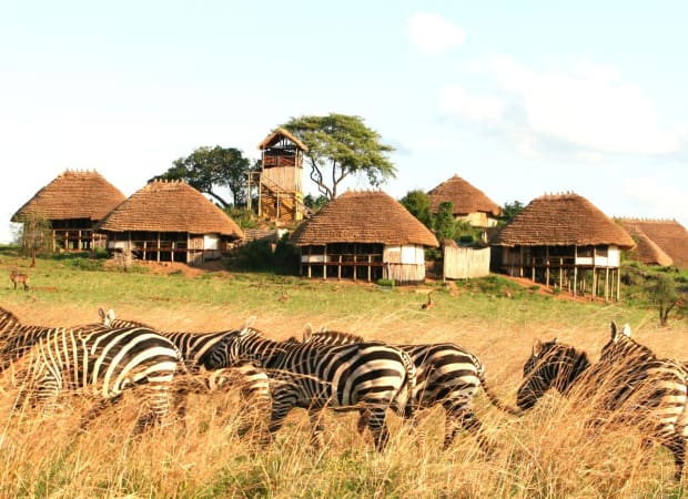 Apoka Lodge has been built to show off the glorious natural surroundings which it combines with luxurious comfort. Everything is locally made by craftsmen from nearby villages. The lodge has ten spacious cottages surrounded by natural canvas and rocky outcrops, which are very traditional for East Africa, offering stunning views across the endless savannah. All of the cottages at the lodge have the most comfortable facilities including their own en suite bathroom with double sink and large shower. An added luxury are the rooms' private bathtubs which are found on a sheltered terrace a few steps away from the room itself, with wonderful views of the Kidepo Valley National Park. The lodge also has a swimming pool and main lodge with dining room and plenty of sitting areas.