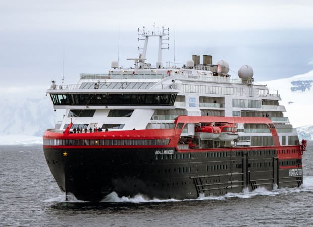 At the forefront of sustainability, MS Roald Amundsen offers upscale expedition cruising, fully inclusive of offshore and land excursions, informative talks, and Science Center research, along with superb dining, gym and wellness facilities.