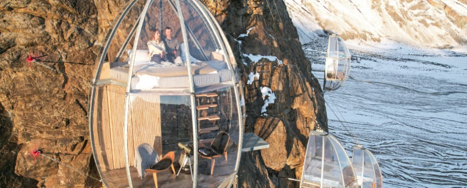 Immerse yourself in the natural splendour of Patagonia with a once-in-a-lifetime travel experience, spending the night in an OVO, a glass capsule suspended 270-meters above the dramatic scenery of Estancia Bonanza with panoramic views of Mount Fitz Roy.