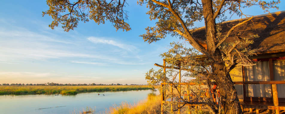 Kwando Lagoon Camp is a eight-room camp, lying on the shady banks of the Kwando River and set among tall and ancient African ebony and marula trees, overlooking the Kwando River with its resident pods of hippo, perfect for exploring by boat.