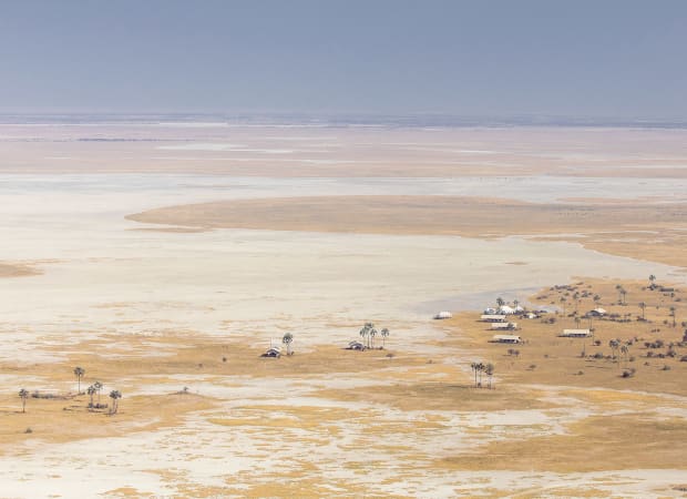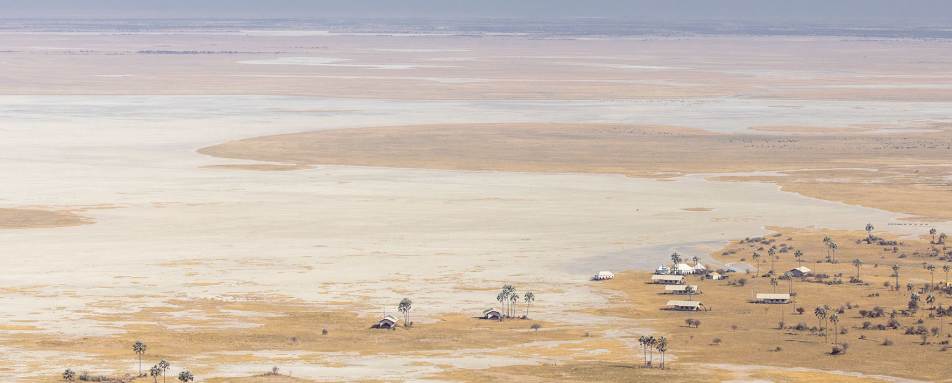 Set on the edge of the Makgadikgadi Salt Pans, the camp is a collection of 1940s safari tents, with four-poster beds, cambric sheets, paraffin lamps and butlers. It's beautifully eco-friendly, being run entirely by solar power and leaving barely a sign of its existence. In keeping with the remote environment, there is no internet access nor electricity however there are central charging facilities in the main area. Paraffin lamps are lit around camp at night adding to the romantic atmosphere.