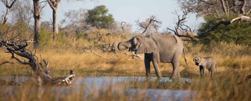 The Linyanti Reserve is a vast tract of African bush (125,000 hectares) between the Chobe National Park and the Okavango Delta, characterized by open grassland, riverine forest and mopane savannas. The area is particularly noted for its very large elephant population and its regularly sighted predators including lion, leopard, cheetah, wild dog and hyena and the vast herds of antelope in the area.