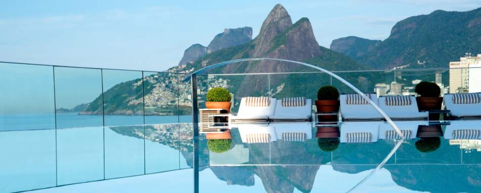 The rooftop pool is one of the most specatcular places anywhere in Rio, with gorgeous views especially at sunset down Ipanema to the Dois Irmaos peaks.