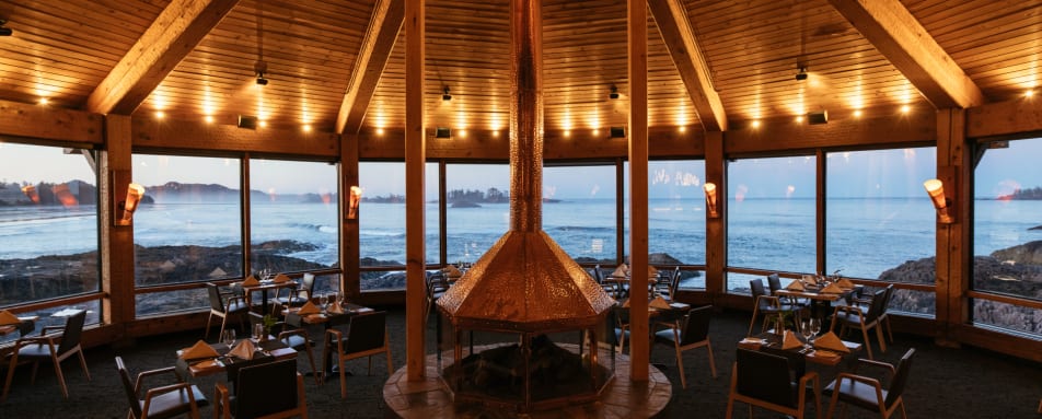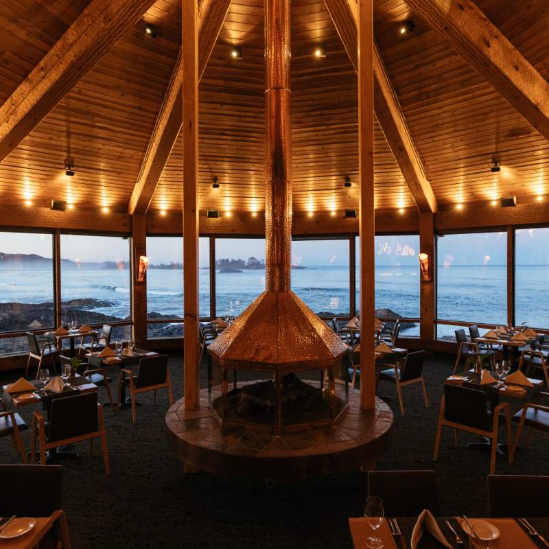 If the weather becomes a little more dramatic, curl up by the fire and watch the storm from the comfort of your own room, the snug library or one of the lounges which afford wonderful views. Take a yoga class or relax in the spa with a vast array of treatments or treat yourself to a wonderful gourmet experience at The Pointe restaurant. With 240 degree views, a collaboration with the Tofino-Ucluelet Culinary Guild, ensuring local grown organic ingredients and Executive Chef Warren Barr's flair, guests are spoiled for choice. If your stay is during a weekend, the Champagne Sunday Brunch is a must. Also, for those with a sweet tooth, their delectable chocolate dessert is created by Chef Pâtissier with the purest chocolate and hand-selected fruit. Decadent bliss!
