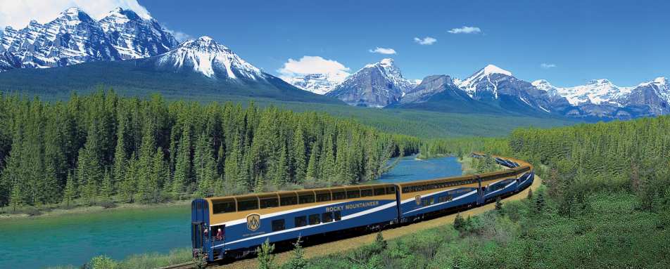 Experience the Canadian Rockies by rail on board the iconic Rocky Mountaineer train