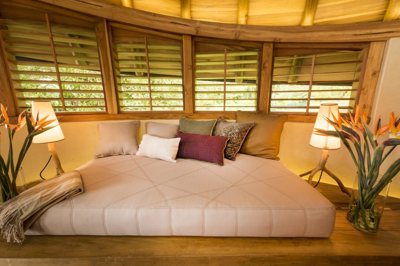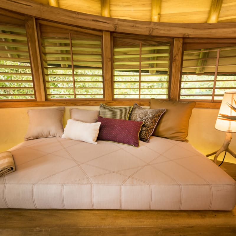 The rounded structures are built from natural materials like wood, stone and bamboo, with the roof covered in moss and flowers, camouflaging the retreat into the local flora seamlessly. The open-air communal areas, restaurant and lodges all offer far-reaching views out to Lake Nicaragua and beyond, with a stunning infinity pool to cool off from the midday heat.