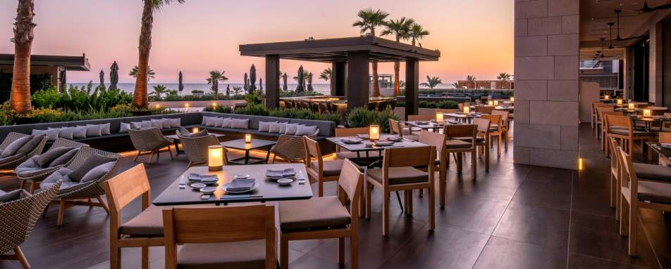 Start the day in AMARA’s breakfast room, a light and airy in/outdoor setting with pool and sea views, a vast buffet choice and a la carte options catering for all tastes. For lunch and evening meals there is a divine choice of restaurants bringing exceptional cuisine. World-renowned chef Nobu Matsuhisa’s latest outpost is the Matsuhisa Limassol, where he combines cuisine from his native Japan with influences from Peru. Here you will experience a personalized array of NOBU’s legendary signature dishes including: Salmon karashi su miso, Black Cod with miso, Rock shrimp tempura, NOBU sushi and sashimi, as well as an extensive menu of sake and exotic cocktails. Other restaurants at the hotel include the Ristorante Locatelli, created by Michelin-starred Giorgio Locatelli specializing in Italian cuisine and fine wines, and Armyra by Papaioannou, seafood delights from outstanding chef Giorgos Papaioannou. Cypriot cuisine is the specialty of The Dining Room. Lighter lunch options can be found at the Pool Bar with local and international options. The Rooftop Bar is the height of exclusivity and a thriving social hotspot, the ideal place to unwind and watch the sun set with a cocktail in hand while enjoying relaxing music.