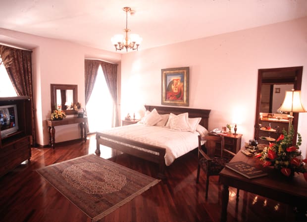 The comfortable suites and guest rooms are decorated in a typical colonial style and feature elegant carved wood furnishings and reproduction artworks. There are areas for relaxing dotted around the hotel, including the library and guests can also enjoy Spanish and local cuisine in the restaurant or some tapas and a glass of wine in the cozy bar.