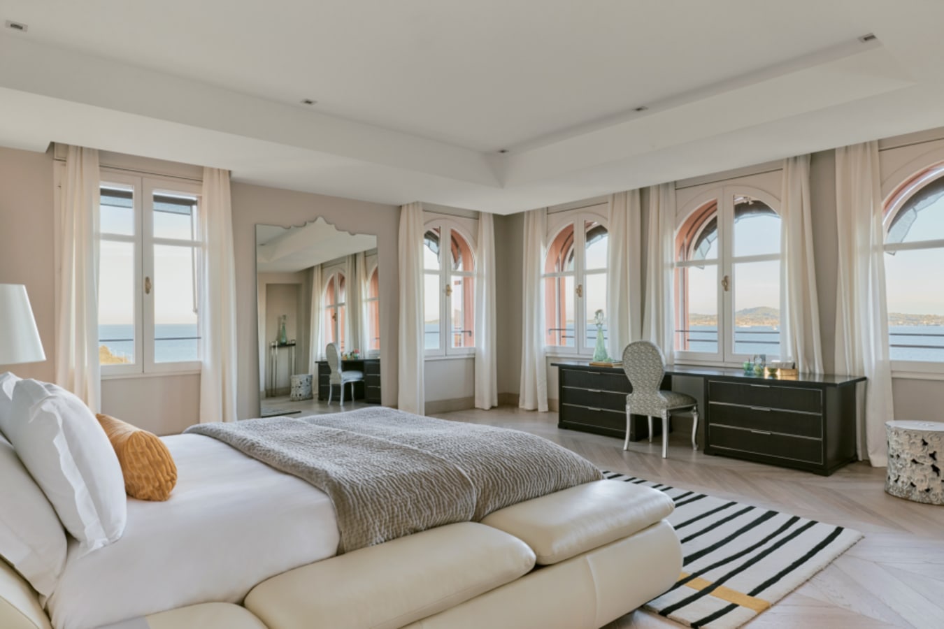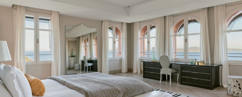 Historic Belle Époque palace set in 10 acres of gardens with a 25-meter mosaic-tiled pool and private yacht pontoon.