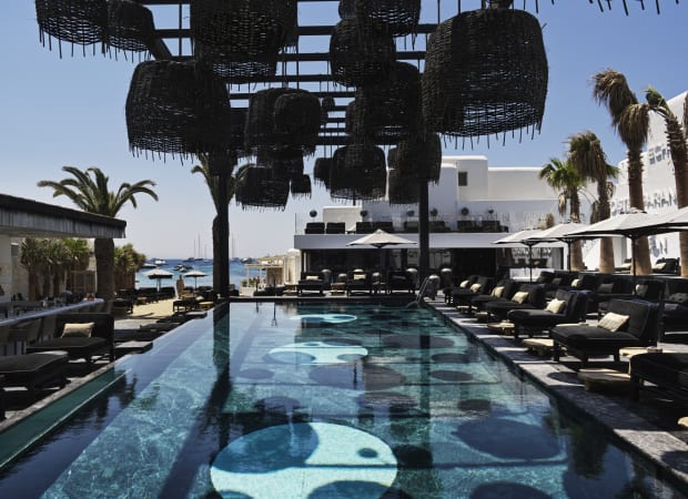 Nestled on the golden sands of Ornos Beach, Myconian O is a 5-star adults-only luxury haven that redefines the Mykonos experience. With its toes literally touching the fine beach, this chic retreat offers a serene yet vibrant escape just 4 km from the bustling Mykonos Town and airport. The hotel’s design is a harmonious ode to the island’s natural beauty, blending minimalist sophistication with boho-chic interiors featuring rattan lighting, mustard yellow retro phones, and vinyl record players that create an intimate, soulful atmosphere.