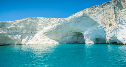 Next, it’s time to head to the Cyclades, where your first stop will be the enchanting island of Milos. You’ll spend three nights on this breath-taking island which really packs a punch, boasting otherworldly landscapes, gorgeous beaches and a fascinating history going back thousands of years. Discover the very best of Milos with your private guide, from the remains of an ancient Neolithic city to the lunar-like white stone and stunning blue waters at Sarakiniko bay. After exploring the highlights of the island, enjoy a private boat trip around Milos's incredible coastline to the white cliffs of Kleftiko. Admire the spectacular white rocks and jump in the crystal-clear waters, where you'll snorkel through caves which are inaccessible by boat.