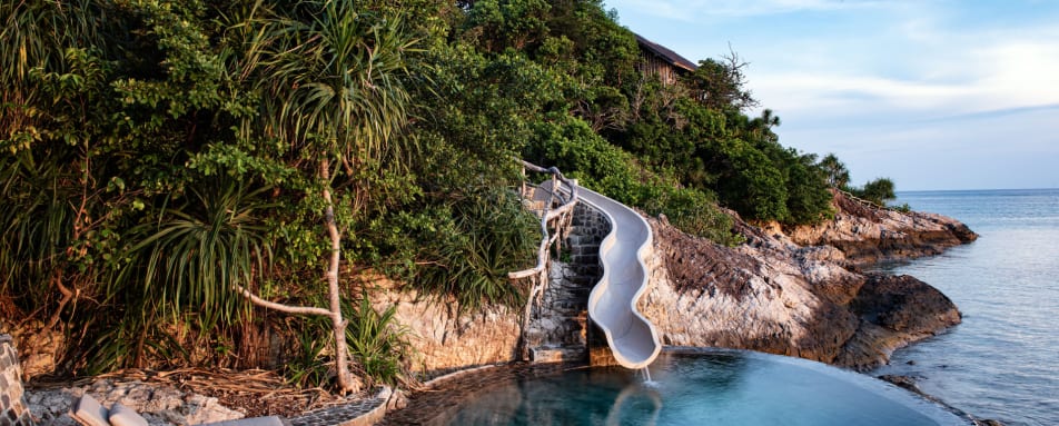 This tiny private island within Indonesia’s eco-friendly Bawah Reserve is one of six islands in the remote Anambas Archipelago, northeast of Singapore. Covered in forested hills overlooking turquoise waters, with white sandy beaches, coral reefs and protected bird and wildlife, Elang is available for single group bookings of up to 20 adults.