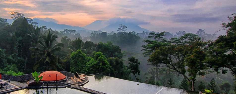 MesaStila rests in the breathtakingly beautiful rural heartland of Central Java. Java is framed by the Indian Ocean in the south and the Java Sea in the north, with Sumatra on its west coast and Bali to the east. The resort has stunning views of the surrounding volcanoes.