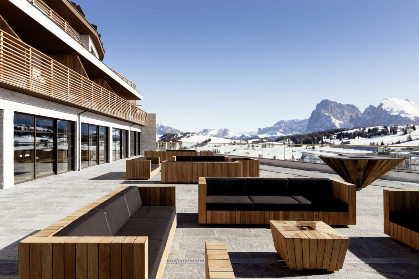 Full of stylish elegance and refinement, the rooms and suites have been designed with the same minimalist aesthetic, with feature wood panelling and a soothing neutral palette. All enjoy wonderful mountain views from the balconies or terraces, large comfortable beds, a den area with a sofa bed, walk-in closets, desk, minibar, safety deposit box, satellite TV and Wi-Fi. Ensuite bathrooms include bathtub, shower, double vanities, and separate WC. Superior Rooms have either a south facing balcony or garden access. Some can be interconnected for families and some rooms have a sliding partition to separate the sleeping and living areas. Book an Exclusive Room to enjoy a south facing terrace. Suites include a separate living room with a bio fire, comfortable seating, and south facing balcony. The ensuite bathroom has the added benefits of a bathtub and double shower, along with an infrared sauna. Sleeping four guests, Deluxe Suites include two bedrooms and two bathrooms, a spacious living room with dining area and whirlpool bathtub. Chalet Deluxe Suites are in the chalet adjacent to the main lodge and are connected via an underground passageway. These feature one bedroom, a living room and bathroom, along with a large balcony. Similarly, Chalet Deluxe Suite Sella are in the same chalet with two bedrooms, living room, bathroom, and large balcony. The Mountain Restaurant & Stuben enjoys spectacular views and in keeping with the hotel’s philosophy of responsible travel, uses sustainable local and regional produce where possible. Serving creative and accomplished Mediterranean, regional and international cuisine, guests can choose from a wide variety of fine wines to accompany the beautifully presented food. Alternatively, guests can enjoy the modern Alpine style and more relaxed vibe of the Alpina Chalet Restaurant, serving favorites that include gourmet pizza, succulent steaks, and Mediterranean classics. To relax with a drink, head to the Mountain Bar, a cozy and refined space with a convivial atmosphere. Guests can also relax on leather sofas in the Cigar Lounge, where the world’s best cigars can be enjoyed alongside premium cognac and spirits. With a focus on wellbeing, the Como Shambhala Retreat offers holistic treatments, health programs, panoramic indoor and outdoor swimming pools, gym, Finnish sauna, bio-sauna with aromatic herbs, saline or aromatic steam bathing, water beds, and loungers to enhance relaxation and enjoy the magnificent views. Located in Compatsch, at the western end of the Alpe di Siusi, above the famous villages of Siusi allo Sciliar and Castelrotto, the hotel is close to the Siusi-Alpe di Siusi cableway. Innsbruk Airport is a 2-hr away, while Verona Airport is around 2.5hrs away.When to visit