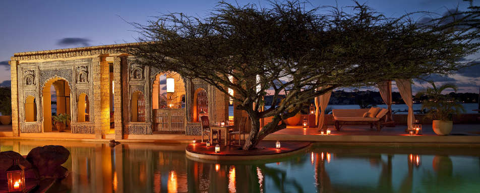 Relax by one of the two swimming pools which have panoramic views over the sea towards Shela village on Lamu