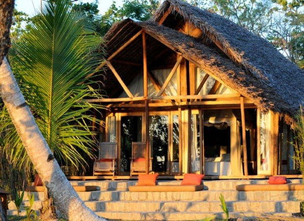 The lodge is situated in a grove of palm trees on the south-west side of Ile St Marie island, overlooking a lagoon which is home to a small reef, Eastern Madagascar