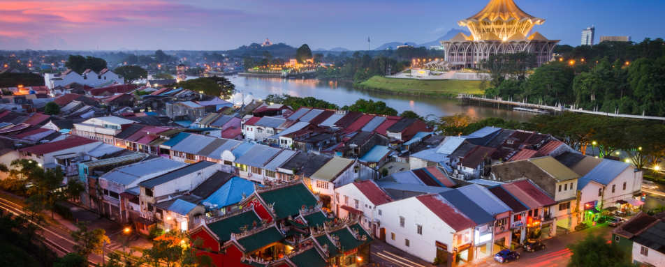 Malaysia is often referred to as a cultural melting pot, and Kuching is a perfect example of this. Within the city, visitors will find a mixture of Colonial buildings from the ‘White Rajah’ era, Chinese temples and Indian mosques, as well as colorful markets and winding shopping streets, selling spices and fresh produce, much of which is unique to Borneo. On the outskirts of the city, traditional Malay villages, known as kampongs, line the river.