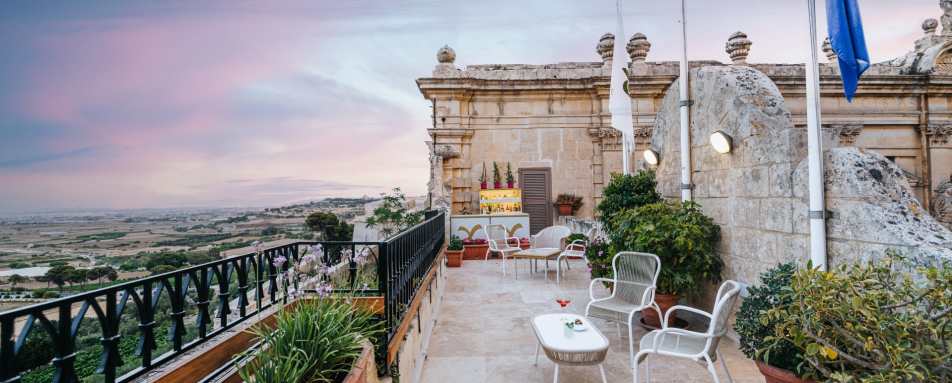 Magical position in the ‘Silent City’ of Mdina – a converted 17th century palazzo with stunning panoramic views over the countryside