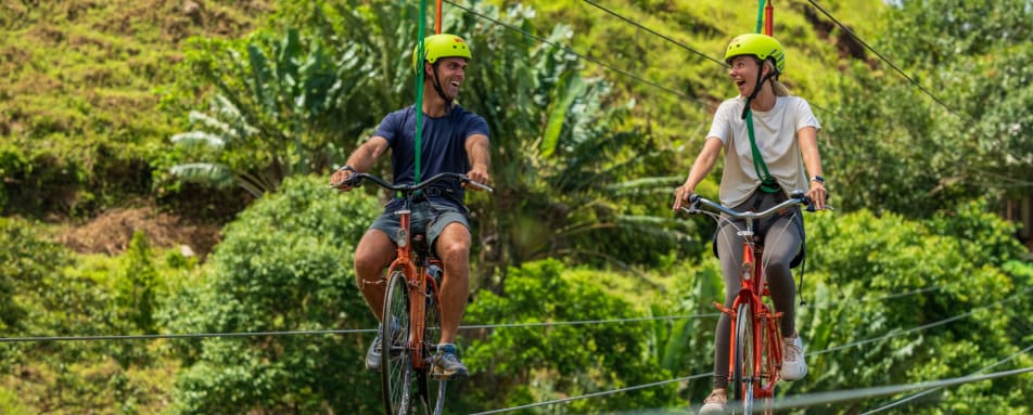 Experience Vallée, Mauritius’ only adventure park, where zip lines, quad-bike trails, and sky-high bicycle rides meet tranquil nature walks, waterfalls, and scenic viewpoints for a perfect balance of thrill and serenity.