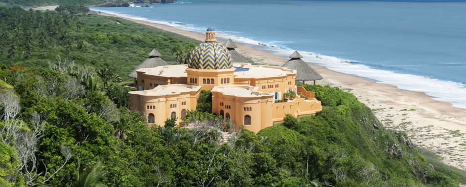 Built among a landscape of sprawling green acres, coconut groves, jagged coastline and fragrant fruit plantations, Cuixmala is a unique collection of luxurious private villas and casitas by Sir James Goldsmith.