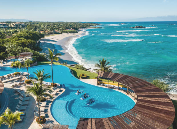 The Four Seasons Resort Punta Mita is a luxurious family-friendly resort hotel with excellent facilities on a private isthmus on Mexico's wild Pacific coast fringed with sandy beaches against a backdrop of forest-clad mountains.