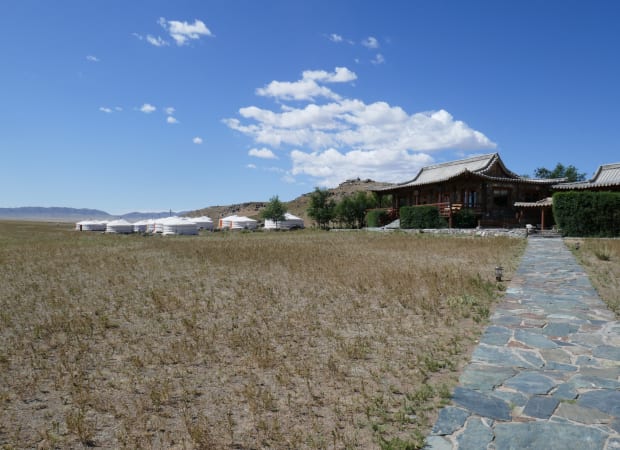 At the heart of the lodge lies Dino House, a traditional wooden building clad in clay tiles and designed to mimic a Mongolian temple. With wide verandas and incredible desert views, Dino House is the perfect place to relax in the heat of the day, perhaps trying your hand at traditional Mongolian games or borrowing a book from the small library. Serving a variety of Mongolian and western cuisine, the Bulagtai Restaurant is housed inside an over-sized ger, bedecked in traditional textiles and splashes of color. Expect delicious organic meat and dairy products from local herdsmen, pasteurised on site, with fresh fruits and vegetables harvested from farms in nearby Bulgan. Visit the well-stocked bar for a nightcap before retiring to the warmth of your ger.
