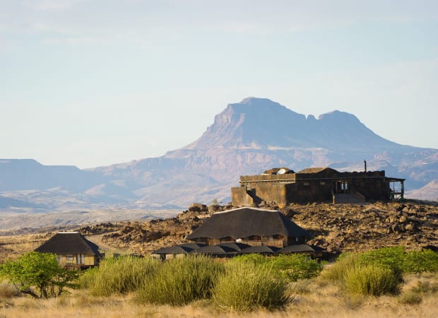 The unique lodge design allows for an unspoiled panoramic view of this diverse and dramatic landscape, which varies from tabletop outcrops, small canyons, dry riverbeds to wide grassland vistas. The magnificent terrain holds the possibility of a sighting of the rare desert-adapted elephant while enjoying a nature drive.