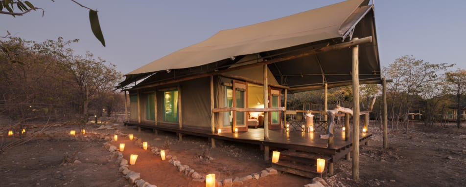 This small, traditional tented camp offers the best of both worlds for your stay in Etosha. Located on the Ongava Private Game Reserve bordering Etosha National Park, you can enjoy game viewing in both areas and a variety of additional safari activities not available elsewhere in the area. Ongava Tented Camp has just 8 tents, offering a very private and intimate safari experience.