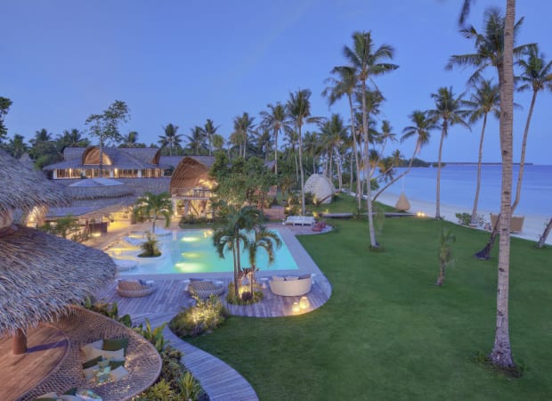 Boasting the traditional pointed thatched roofs of Indonesian architecture, the resort sits on the soft white sands of the crescent-shaped private bay surrounded by fragrant tropical gardens. Sandy pathways connect the complex of treehouses, pavilions, restaurant, spa, and villas, and there are numerous secluded nooks, swing chairs and hammocks, allowing guests to retreat from the pressures of the modern world. The intuitive service and warm Filipino hospitality are world-class, and the vibe is intimate, relaxed, and welcoming.