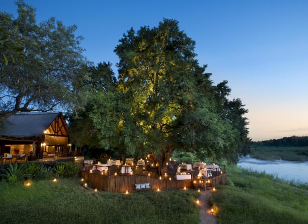 Lion Sands Tinga Lodge is a nine suite lodge on the banks of the Sabie River in the Kruger National Park. This is a beautiful safari lodge in one of the most notable big game viewing areas in South Africa.