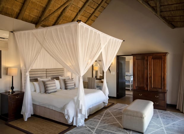 Built of stone with thatch roofs, the six luxury suites have been tastefully decorated in neutral shades with hints of color that have been inspired by the surrounding African bush. The suites are spacious with king size beds, two comfortable armchairs and en-suite bathrooms which feature both an indoor and an outdoor shower together with a separate Victorian style bath.