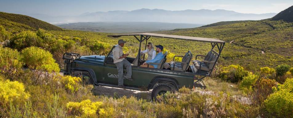 Specialty guides are also on hand to take you on fynbos drives through the reserve, on specialized bird watching trips, on marine coastal drives looking out for whales (July-December), as well as drives through the Walker Bay Nature Reserve, De Kelders cliff walk and Klipgat Cave.