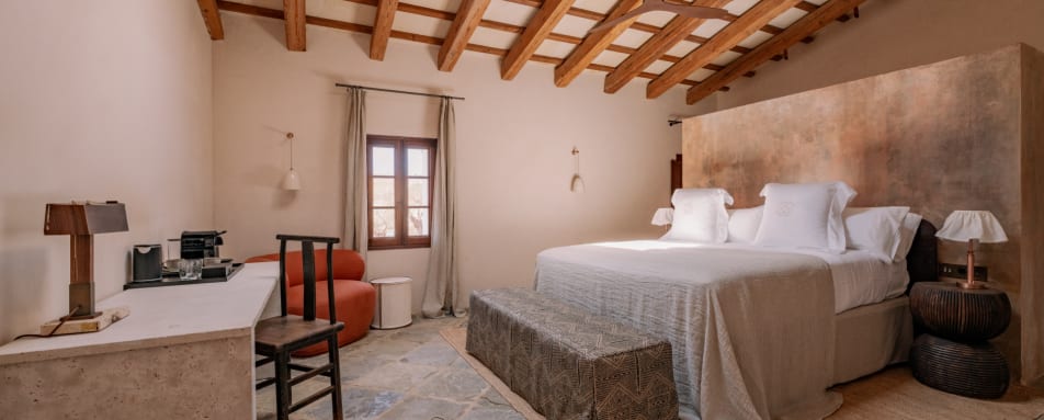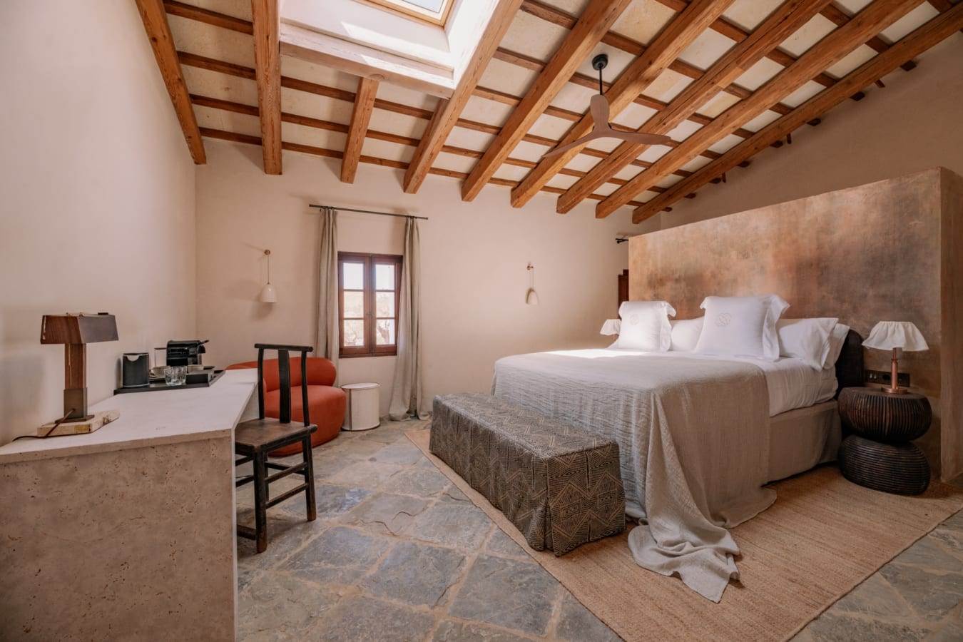 Life here revolves around simplicity and connection to the land, whether that’s long, sun-drenched lunches showcasing seasonal, locally sourced produce, or exploring the surrounding landscapes by foot or bike. With its intimate scale and warm, personalized service, Son Ermità feels more like a private retreat than a hotel—ideal for those seeking a refined yet relaxed escape, far from Mallorca’s busier coastal scene.