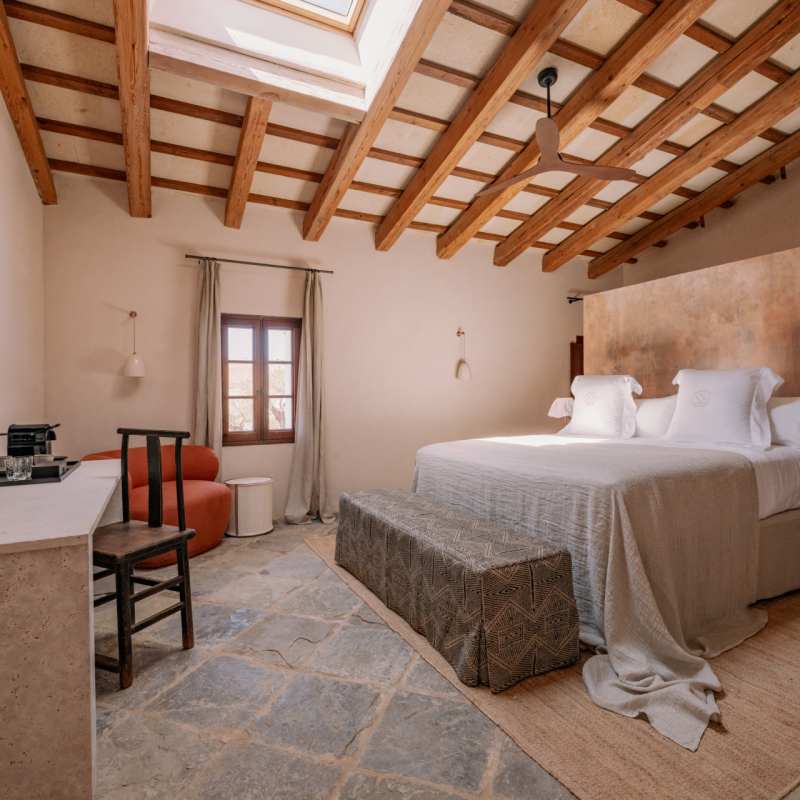 Hotel Son Ermità is a beautifully restored Mallorcan finca that captures the essence of understated, rural luxury. Set amidst rolling countryside and ancient olive groves in the island’s quieter north, the hotel offers a deeply authentic sense of place—where traditional architecture meets soft, contemporary design. Interiors are calm and considered, with natural textures, neutral tones, and an effortless elegance that invites guests to slow down and fully unwind.