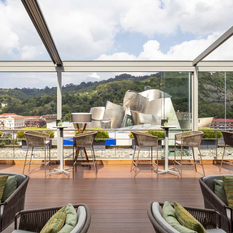 The central location and spectacular views of the Guggenheim make The Artist Grand Hotel of Art Billbao an ideal base from which to explore the museum and the sights of Bilbao as part of a longer trip exploring the Basque region. With 145 rooms, a restaurant with panoramic views, bar, gym and wellness center, it is a comfortable city hotel.