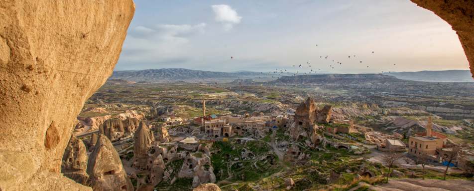 Experience the vast landscapes of Cappadocia from a hot air balloon