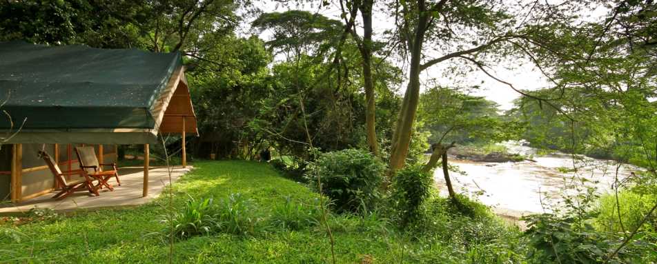 Ishasha Wilderness Camp is an authentic safari camp, with just ten tented rooms on the banks of Ntungwe river, in the remote Ishasha sector of the Queen Elizabeth National Park. The camp has the feeling of being in the heart of the wilderness.