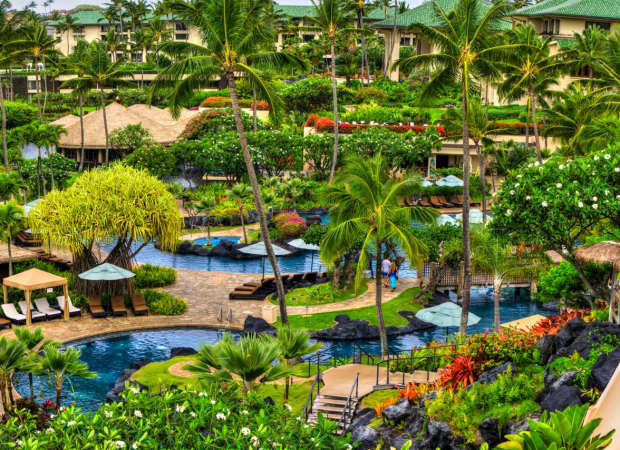 In the beautiful Poipu Beach area of Southern Kaua'i, the Grand Hyatt Kaua'i Resort and Spa offers a myriad of facilities, stunning tropical gardens and lagoon pools directly on the beach. A perfect choice for a relaxing family resort vacation.