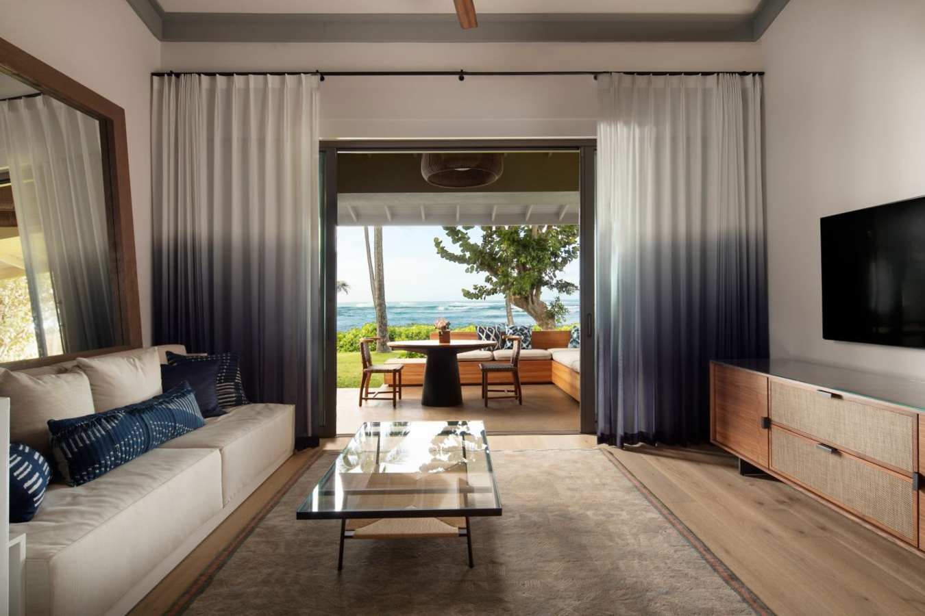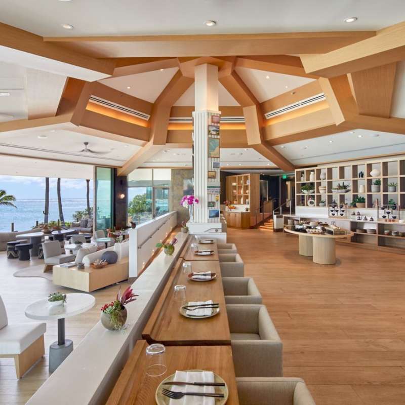 Drawing inspiration from the rhythms of the island, the accommodations are designed with both comfort and purpose. Hotel rooms and suites feature king beds, floor-to-ceiling windows, rich textures, and spa-inspired bathrooms, inviting the outside in. For those seeking more space and independence, The Residences provide one- to four-bedroom layouts with full kitchens, expansive lanais, private entrances, and panoramic views of the Pacific. Every detail—from handwoven decor to custom furnishings—echoes the land’s colors, materials, and spirit.