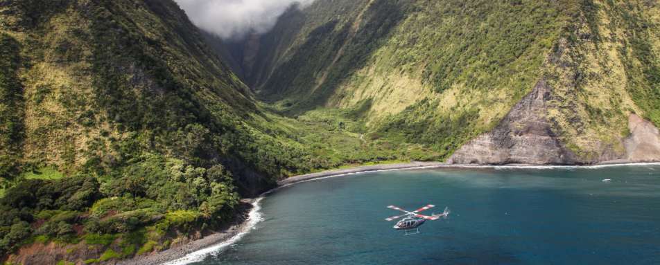 A picnic lunch is served during your adventure before you return to the Hilo Airport and back on to the helicopter once again. The second part of your air adventure will take the leisurely route to Kona along the eastern and northern coasts. You will fly deep into uninhabited valleys that showcase Hawaii’s wild, untamed beauty. Waterfalls cascades down steep valley walls and surf pounds rocky cliffs and untouched beaches. Finally, the landscape shifts once again as you fly over Pololu Valley and over beautiful beaches to make your way down the coastline and return to the Kona Airport in time to enjoy one of Hawaii’s famed sunsets.